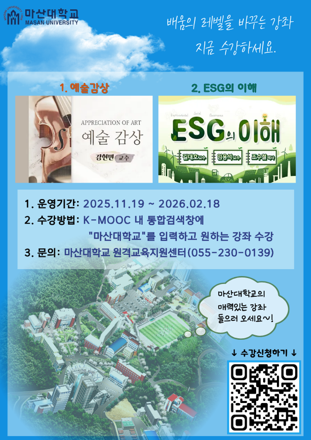 마산대학교 2025년 K-MOOC 강좌 수강 안내