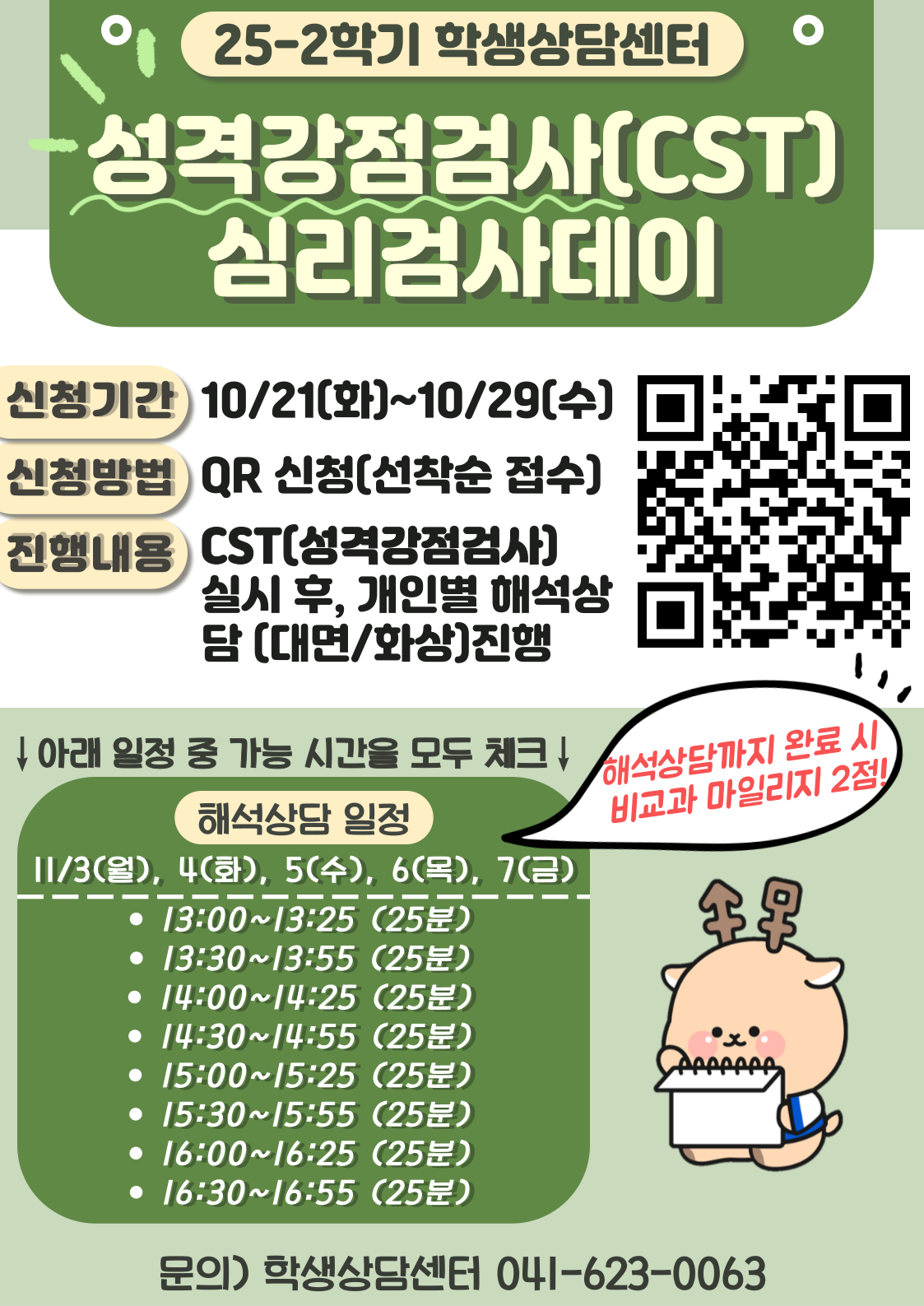 | 천안 [학생생활] | [학생상담센터] 25-2 <성격강점검사> 심리검사데이 신청 안내 |